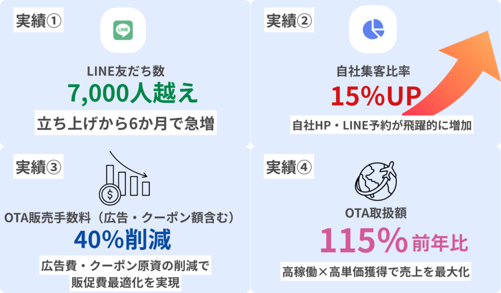 新規顧客の獲得と自社予約への転換を両立しました。