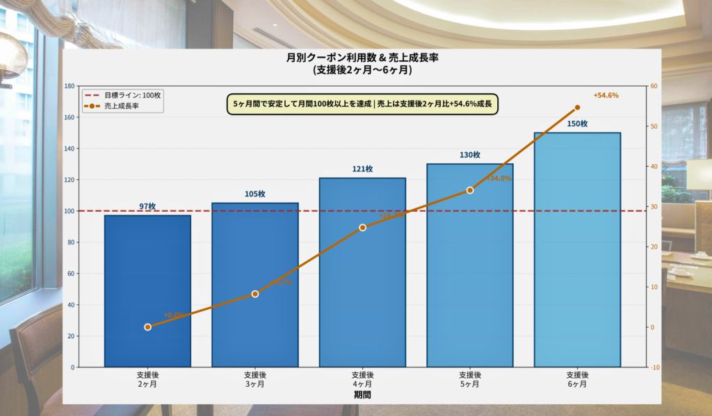 LINE特典の配信で毎月安定的な成果+利用枚数増加。