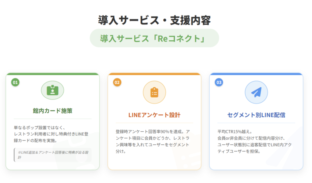 レストラン利用者に対し館内専用LINE登録カードの配布を実施。